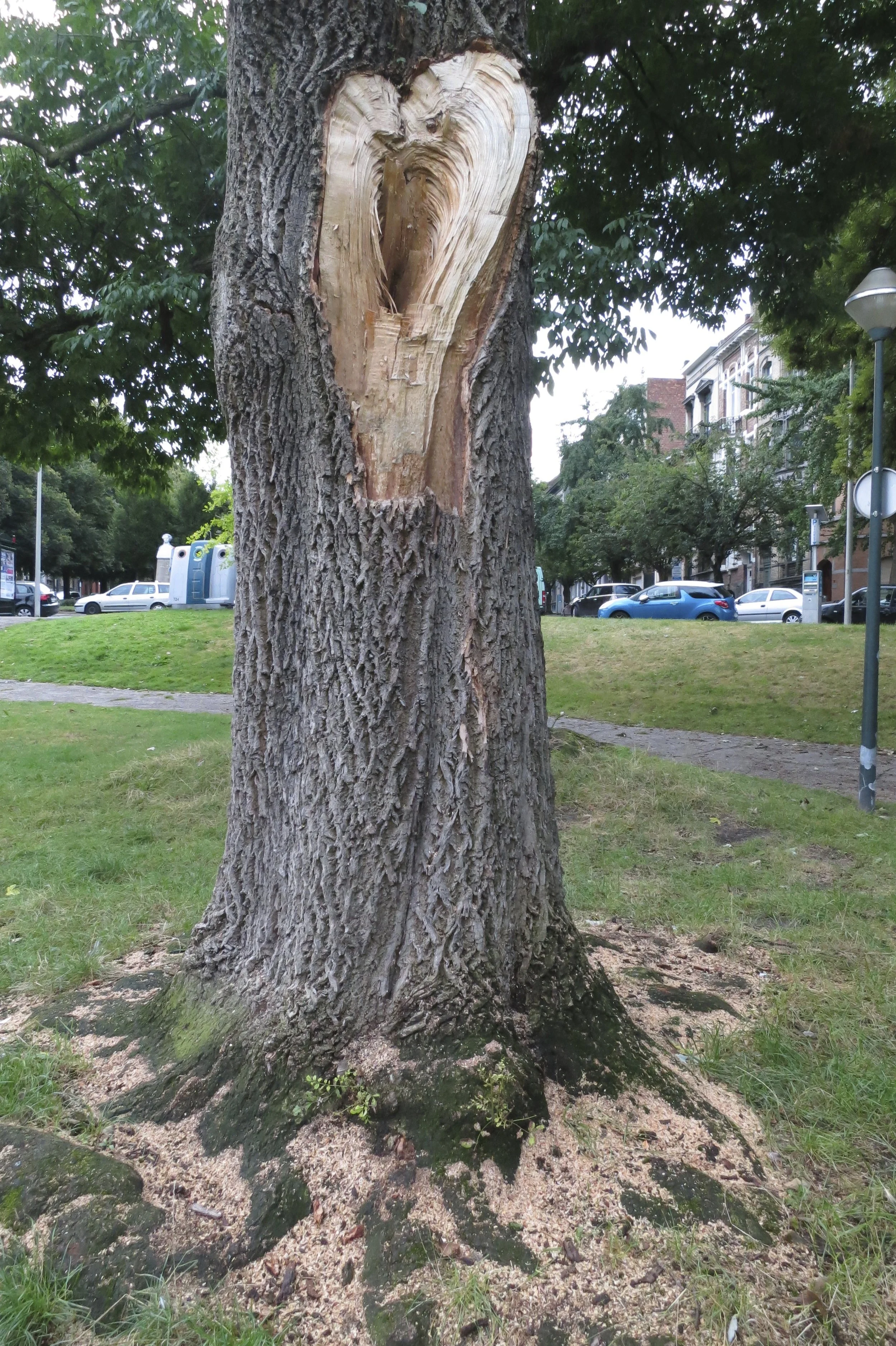 well here is a heart tree, i came across one day. all ripped open and raw,  its own saw dust at its roots. seemed violent and sad and and poetic. just standing there in the middle of a little patch of green, barely a park. in between footpaths, flanked by roads, bounded by houses and passed by busses and dogs off leashes. but i had somewhere else to be and no time to contemplate the meaning of it all.